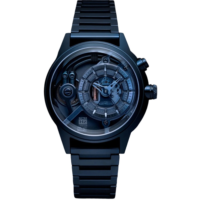 Electricianz Watch The Blue Z Metal Band ZZ-A4C/03-MSB. The Blue Z, holding it’s own, both rugged and mysterious, while retaining a timeless classic identity. In monochrome, subtly reflecting shades of blue, underlined by a futuristic solid stainless steel band and original LED backlighting for ultimate night vision.