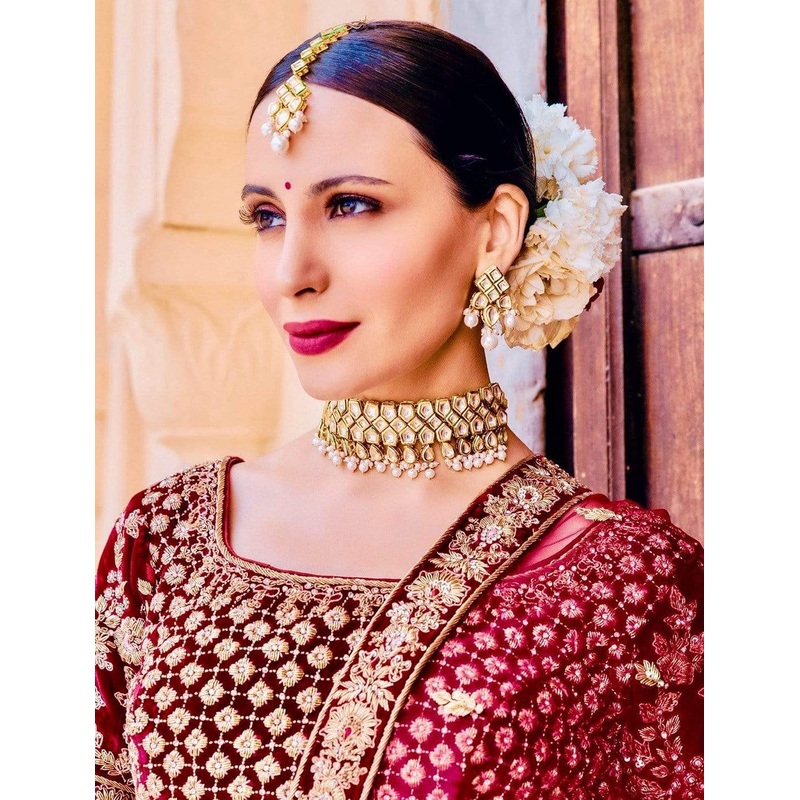 The Elra Kundan Maang Tikka is from the Indian Collection.