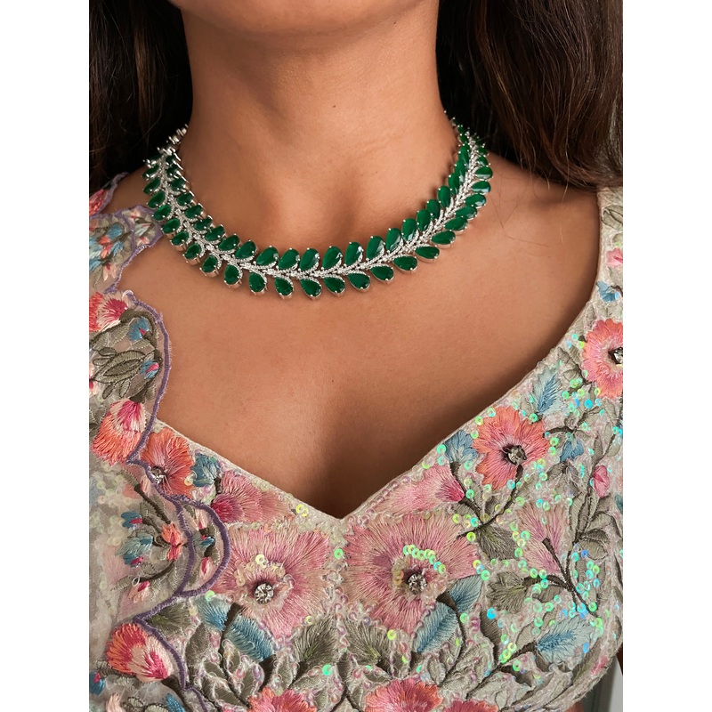 Elevate your style with the Emerald and Diamond Petals Necklace Set a timeless masterpiece that takes your outfit to a perfect ten.