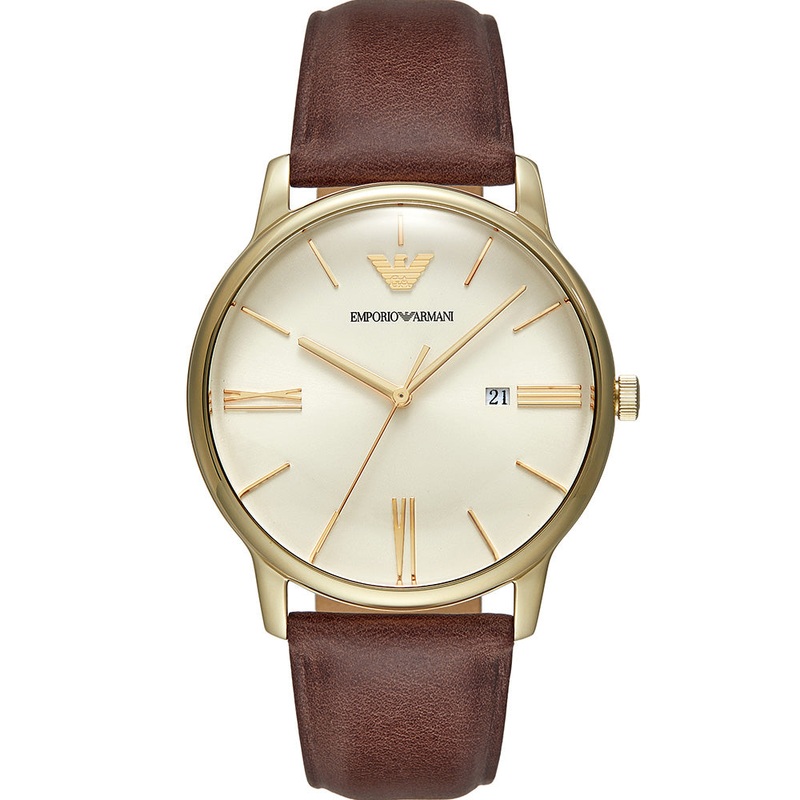 The Emporio Armani Minimalist AR11610 is a refined and sophisticated timepiece that combines classic elements with modern style. Featuring a sleek gold-tone stainless steel case and a rich brown leather strap, this watch exudes timeless elegance and versat