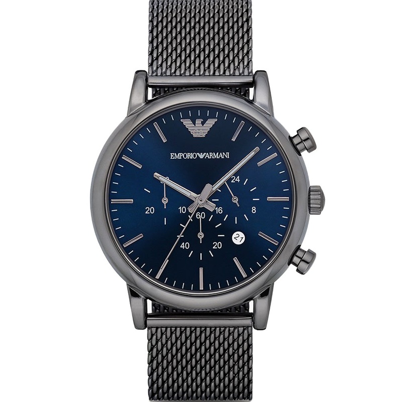 The Emporio Armani AR1979 is a stylish mens chronograph watch with a grey-tone stainless steel mesh bracelet that has combined the look of fabric mesh with premium steel. The dial features a deep blue tone with a reflective sunray finish and has been set with three subdials and a date display for extra functionality. A great choice for those with active lifestyles who want a watch that can be worn every day and dressed up for special occasions.