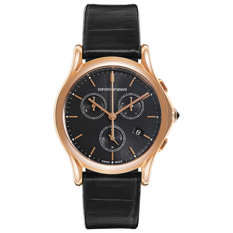 Emporio Armani, Classic, Stainless Steel Rose Gold Plated Case, Leather Alligator Strap, Swiss Quartz (Battery-Powered), ARS6004