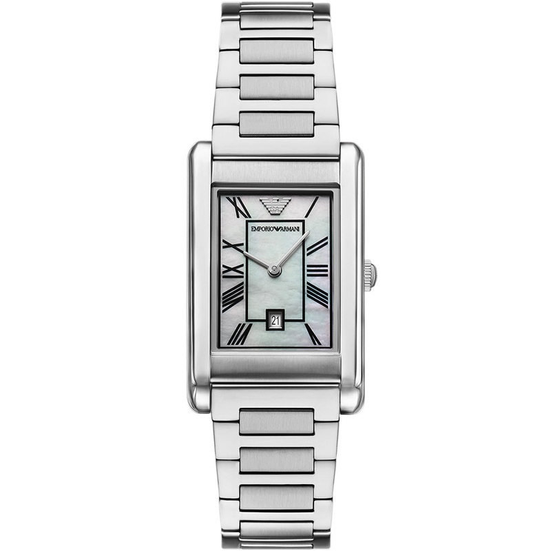 This 25 x 38mm stainless steel watch is a standout piece. With its sleek rectangular case and two-hand date quartz movement, it catches the eye with a glossy mother-of-pearl dial accented by black Roman numeral indexes. The stainless-steel H-link bracelet adds an element of elegance, making it an ideal choice for any formal occasion.- Quartz Movement – 25 x 38mm Case Size – Mother of Pearl Dial – Stainless Steel Case and Bracelet – 50 Meters Water Resistant