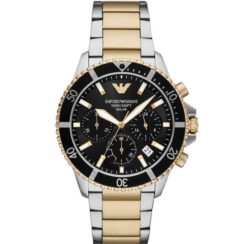 This 43.5mm World Explorer solar-powered chronograph watch boasts a black sunray dial, a sapphire crystal, and a bold two-tone stainless-steel bracelet. Designed for the demands of modern life, its solar-powered movement offers dependable performance, running for up to 5 months on a single full charge. With its solar technology, there’s no need for battery replacements, making it both convenient and eco-friendly. A true testament to exceptional craftsmanship, this watch combines style and functionality seamlessly.- Solar Chronograph Movement – 43.5mm Case Size- Stainless Steel Case and Bracelet – Sapphire Crystal- 100 Meters Water Resistant
