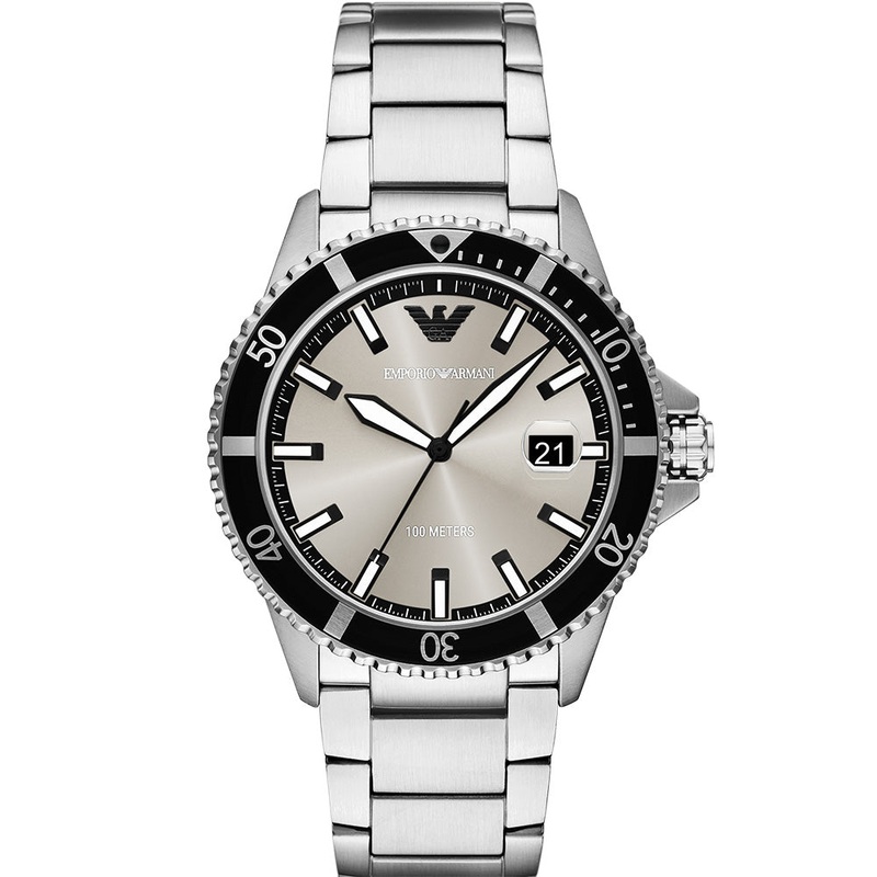 This 42mm World Explorer watch showcases a sophisticated, grey-toned beige sunray dial, a three-hand date movement, and a stainless-steel bracelet. Thoughtful design elements, such as luminous accents on the hands, indexes, and bezel markings, along with a magnifying date window at 3 o’clock, are paired with a sporty design, making this watch a versatile choice for any occasion.- Quartz Movement – 42mm Case Size – Stainless Steel Case and Bracelet – 100 Meters Water Resistant
