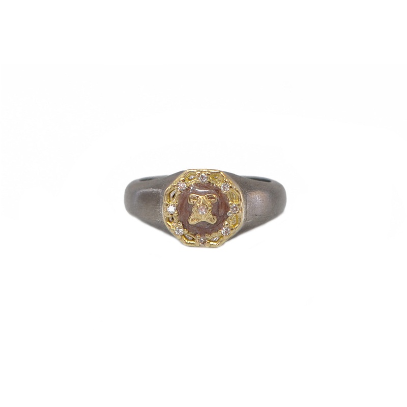 18k Yellow and Grey Sterling Silver Ring withDusty RoseEnamel and0.04 CT White Diamonds.
