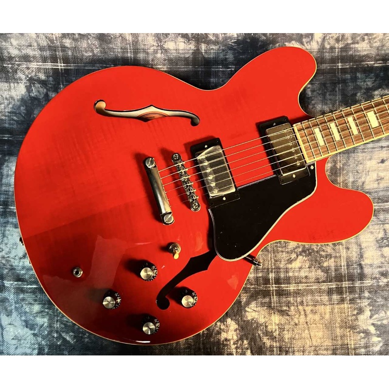 The ES-335 is Epiphone’s version of the historic ES-335 that has been wowing guitar players all over the world for over six decades. From its inaugural appearance in 1958, the Gibson ES-335 set an unmatched standard. Our Epiphone ES-335 is no exception. It is simply one of the best deals today for guitar players who want the classic sound of an ES-335 at an accessible price. The ES-335 is crafted with a layered maple top, back, and sides coupled with a solid maple tone block to create the amazing sustain, warmth, and resonant tone that players crave in a semi-hollow instrument. Epiphone’s Alnico Classic PRO Humbuckers deliver a wide range of vintage sounds while the rounded C neck profile is extremely comfortable and easy to play, and the headstock features the 60s style Kalamazoo shape. Optional hardshell or EpiLite Case available.