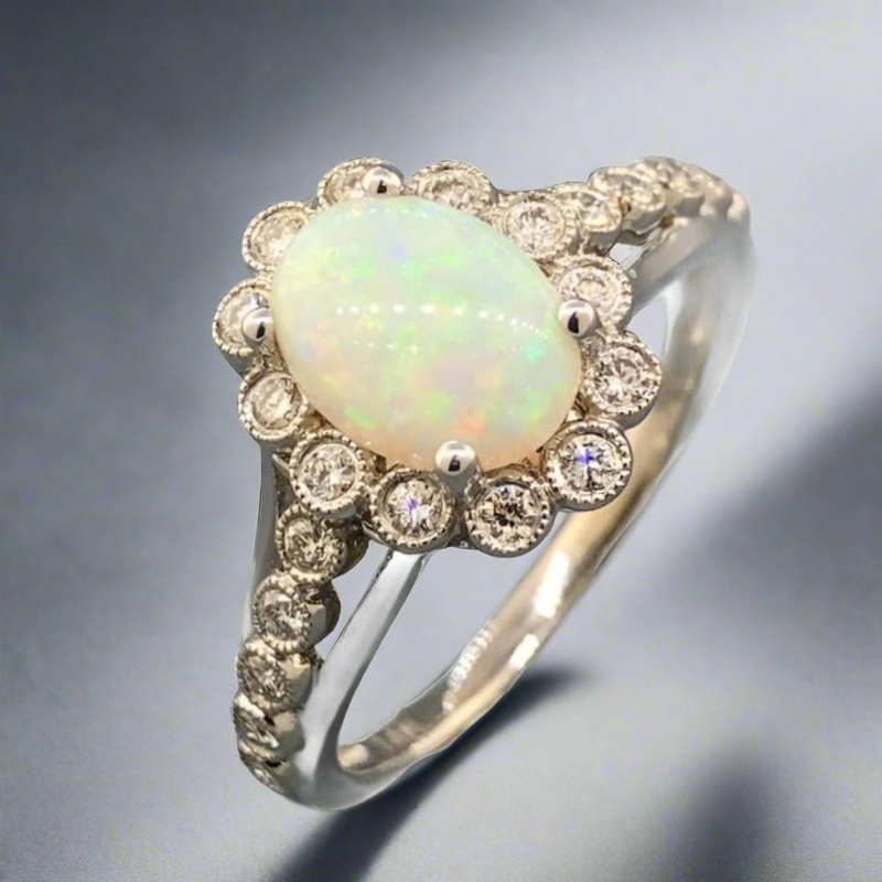 Be the first to review “Estate 14K W Gold 1.38ct Oval Opal & 0.25ctw Diamond Ring”