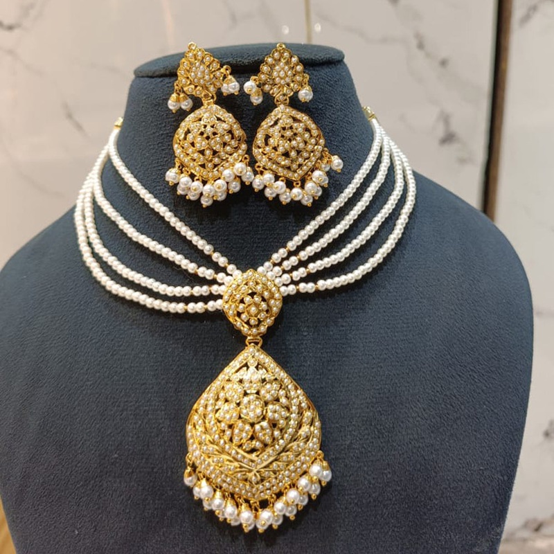 Elevate your traditional look with the Everlasting Jadau Ethnic Gold-Plated Style Pearl Necklace Set, crafted to perfection with radiant pearls and intricate gold detailing. Ideal for weddings, festivals, and cultural celebrations, this necklace set brings a classic, graceful touch to any ethnic outfit. A must-have accessory for timeless sophistication. Note: Image may vary slightly from the actual product.