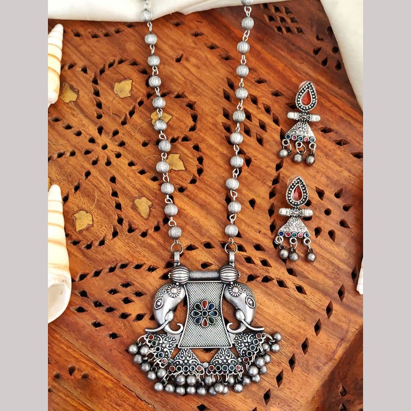 Enhance your jewelry collection with the exquisite Everlasting Quality Jewels Oxidised Plated Pota Stone And Beads Necklace Set. The timeless design features high-quality oxidised plating and stunning Pota stones and beads, making it a perfect accessory for any occasion. Elevate your style and add a touch of elegance to any outfit with this beautiful necklace set.Note: Image may be vary slightly from the actual product.