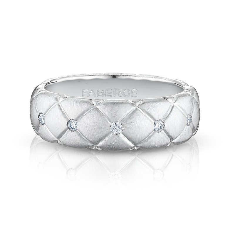 The Treillage Collection is inspired by the Diamond Trellis Egg, created by Faberge in 1982. The evocative designs, with their soft, tactile and gem-set quilting, represent the perfect marriage of heritage and modernity.