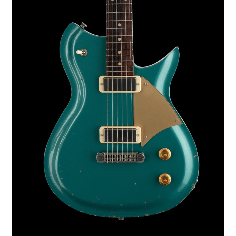 Neck Distress Level:LightBody Distress Level: LightFinish:Nitrocellulose LacquerBody Color:Sherwood GreenNeck Color:Vintage Amber TintUpper Peghead Color: Sherwood GreenLower Peghead Color:Vintage Amber TintHardware:Nickel, Medium AgedTuners: Fano Modern Kluson StyleNeck Pickup:Lollar FirebirdBridge Pickup: Lollar FirebirdPickup Covers:NickelPickguard:Gold PlexiElectronics:Volume, Tone, & 3-WayToggleSwitch Tip:CreamKnobs:Gold BellBridge:TonePros AVT IICase:Fano Deluxe GigbagStrings:D’Addario “NYXL”.010 – .046