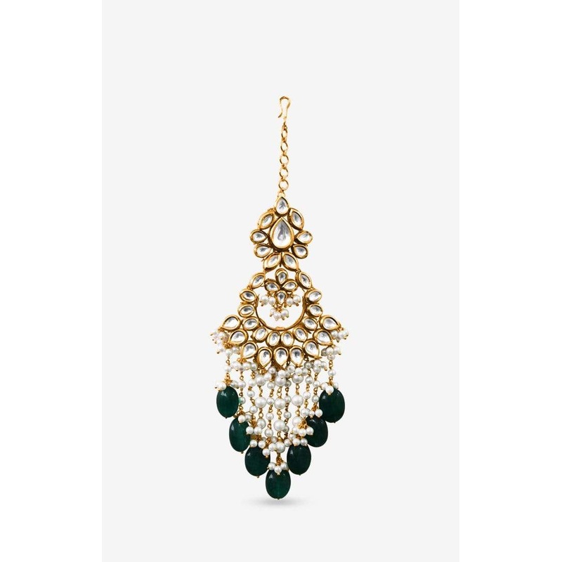 Set with Kundan and elegant deep green bead and pearl drops, these statement making Forest Elra Earrings will give your Indian ensembles a flawlessly beautiful look.