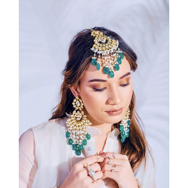 The set consists of the Forest Elra Earrings and Forest Elra Maang Tikka/Passa.