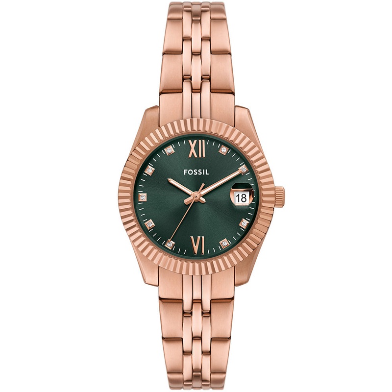 The Fossil ES5369 Scarlette offers a chic and vibrant look with its rose gold stainless steel case and matching bracelet. The 32mm case frames a striking emerald, green dial, featuring precise quartz movement and a convenient date display. The 16mm rose gold bracelet adds a touch of elegance and ensures a comfortable fit. Protected by a mineral crystal and with 50 meters of water resistance, the Scarlette combines stylish design with everyday functionality.- Quartz Movement – 32mm Case Size – Stainless Steel Case and Bracelet – 16mm Strap Width – Mineral Crystal – Date Display- 50 Meters Water Resistant