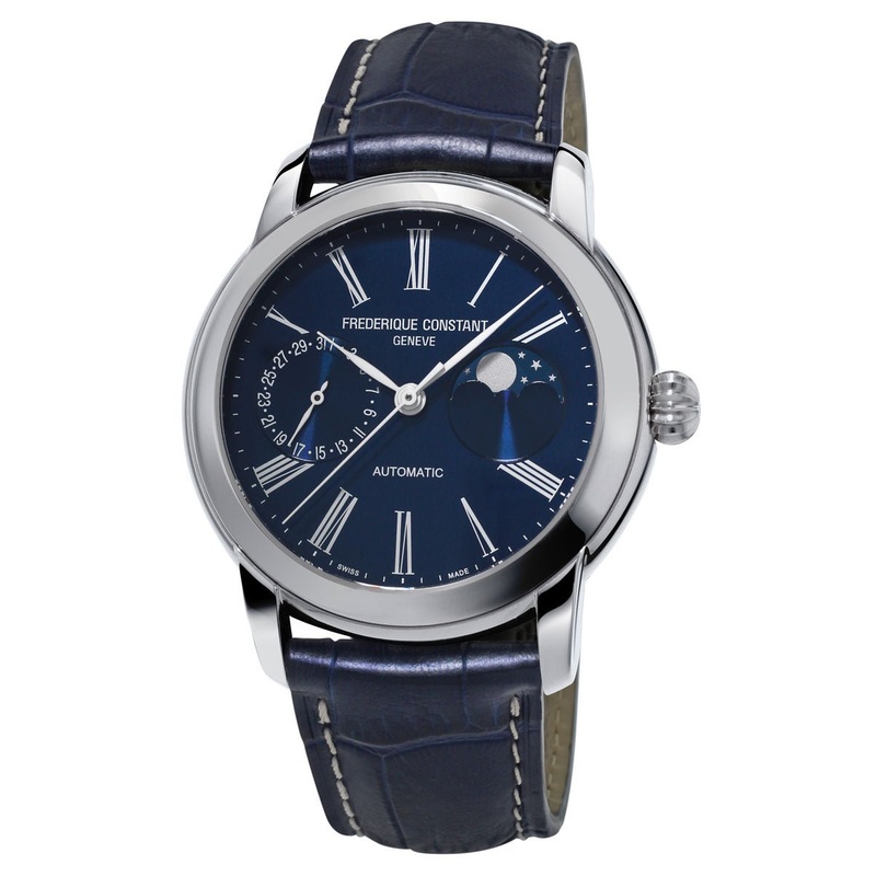Frederique Constant Classic Moonphase Manufacture Automatic Blue Dial Blue Leather Strap Mens Watch FC-712MN4H6