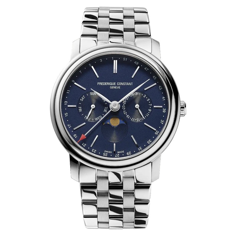 Frederique Constant Classics Index Business Timer Stainless Steel Blue Dial Day/Date/Week Moonphase Quartz Mens Watch Model# FC-270N4P6B / FC270N4P6BBreathing new life into classical watchmaking, Frederique Constant gives concrete expression to its foundin