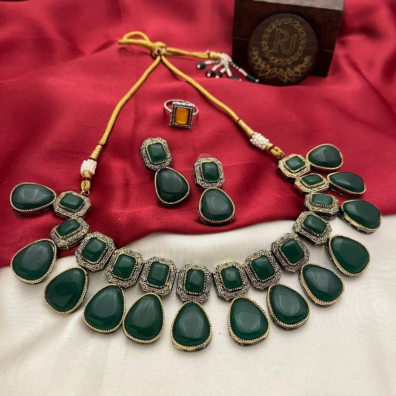 Be the first to review “FS Collection 2 Tone Plated Pota Stone Necklace Set”