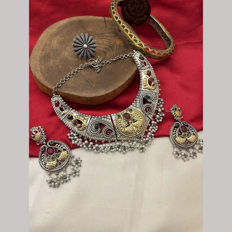 Elevate your style with the FS Collection 2 Tone Plated Pota Stone Necklace Set. This set features two-tone plating and pota stones for a sophisticated and stylish look. Add a touch of elegance to any outfit and make a statement with this must-have accessory.Note: Image may vary slightly from the actual product