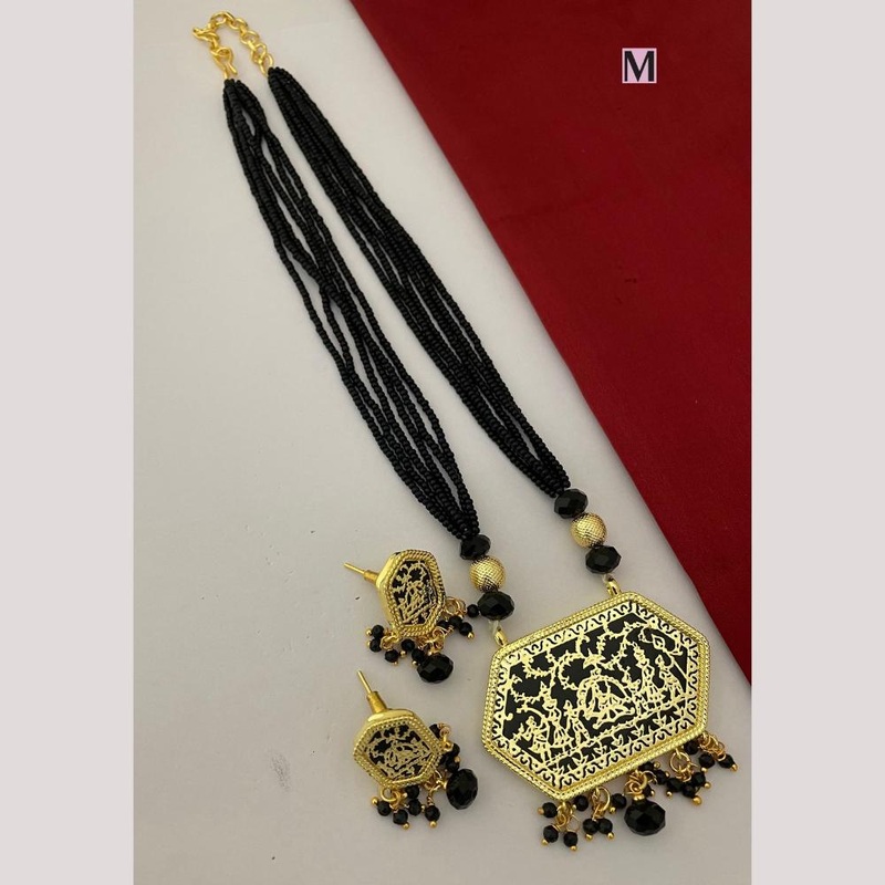 Add timeless charm and traditional elegance to your wardrobe with the FS Collection Classic Gold Plated Beads Necklace Set a beautifully handcrafted jewelry piece designed to complement your ethnic style. This set features a sophisticated combination of gold plating and finely arranged beads, available in classic Black colors, making it the perfect accessory for a wide range of traditional and fusion outfits….. Note: Image may be vary slightly from the actual product.