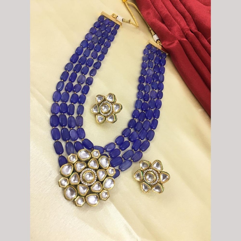 FS Collection Designer Gold Plated Kundan & Beads Long Necklace Set