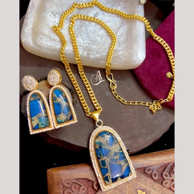Be the first to review “FS Collection Ethnic Gold Plated Druzy Crystal Stone Chain Pendant Set”