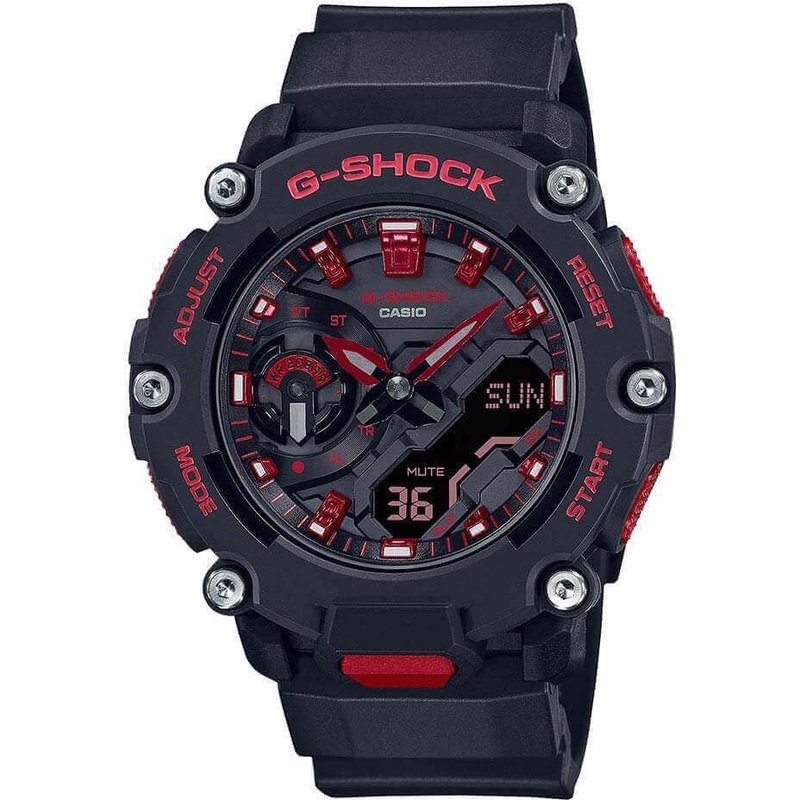 G-Shock Watch Ignite Red Series GA-2200BNR-1AER. Designed especially with brave adventurers and adrenaline junkies in mind, G-Shock watches are made to be entirely shock-proof along with fantastic robustness and multifunctionality including chronograph function, water resistance and more. The G-Shock watch brand was first founded by engineer Kikuo Ibe in 1983 shortly after he broke his fathers pocket watch. From that moment, he decided there was a gap in the market for a collection of strong outdoor watches that were almost unbreakable.