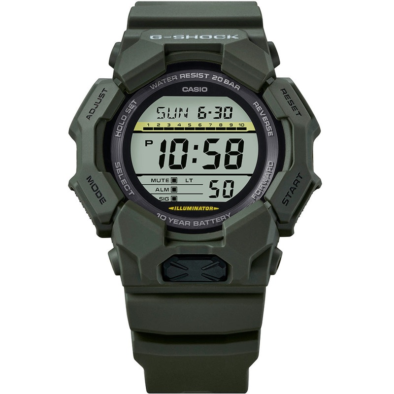 Meet the G-Shock GD010-3D Rugged Digital Watch, designed for those who demand both durability and functionality. With a striking khaki case and band crafted from bio-based carbon and resin, this watch combines rugged performance with environmental responsibility.The GD010-3D boasts a substantial 54.951.916.1mm case and weighs just 65g, featuring a shock-resistant Carbon Core Guard Structure and 200-meter water resistance. Equipped with a 10-year battery, it minimizes the hassle of frequent replacements while the bio-based materials help reduce environmental impact.This watch offers essential features such as world time covering 31 time zones, a stopwatch, timer, and five alarms. Its high-brightness LED light, accessible through a large front button, ensures visibility in any condition. With a full auto-calendar extending to the year 2099, a mute feature for button tones, and accuracy within 15 seconds per month, the GD010-3D meets all your timekeeping needs with ease.- 54.951.916.1mm Case Size – 65g Weight- Bio-based Carbon/Bio-based resin Case and bezel material- Bio-based Resin Band- Shock Resistant- Carbon Core Guard Structure- 200 Meters Water Resistant- Approx. battery life: 10 years on CR2025- Mineral Glass- World time: Multi Time (4 different cities)- World time: 31 time zones (48 cities + coordinated universal time), daylight saving on/off, Home city/World time city swapping- Stopwatch- Timer- Alarm/hourly time signal: 5 alarms (daily or one-time)- Calendar: Full auto-calendar (to year 2099)- Mute feature: Button operation tone on/off- Accuracy: 15 seconds per month- 12/24-hour format- Regular timekeeping: Hour, minute, second, pm, month, date, day