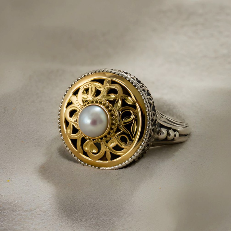 R8295367Garden Shadows Gold and Pearl Ring