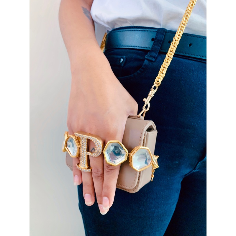The Alphabeto Nano Khaki Bag is every girls dream come true! Perfectly sized to fit all your essentials, with detachable chain straps, this bespoke bag is everything you’ve been waiting for. Wear it as a belt bag, or strap it as a crossbody,