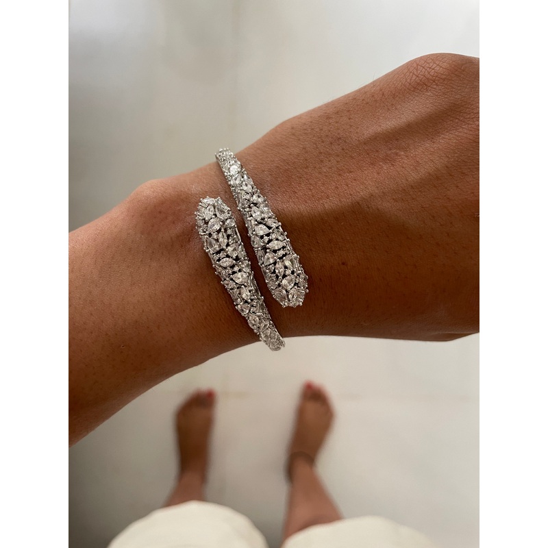 Add sparkle and sophistication to your wrist with this Geometric Diamond Setting Hinge Opening Cuff. Featuring precision-cut zircon stones in elegant teardrop and marquis shapes, this bracelet delivers the brilliance of real diamonds at an affordable price. Designed to shine at every angle, its perfect for special occasions, parties, or everyday glamour.