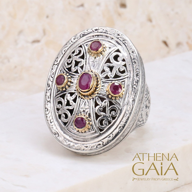 Gerochristo 5 Stone Ruby Cross Ring