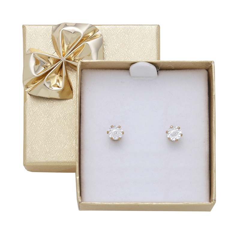 If you are looking for the perfect gift, look no further than these Gift Boxed Hypoallergenic Gold Plated Diamond Studs. These earrings are a versatile must-have in any jewellery wardrobe, making them a perfect gift idea. Crafted in the warm hues of gold plating with the sparkle of brilliant cut diamonds, these studs can be worn on their own or paired with other pieces. The earrings come in a sweet gift box complete with a bow, perfect for birthdays, christmas or an anniversary.