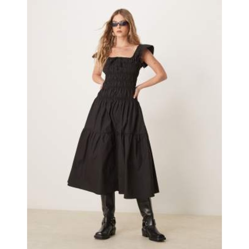 Be the first to review “Glamorous short sleeve shirred poplin midi dress in black”