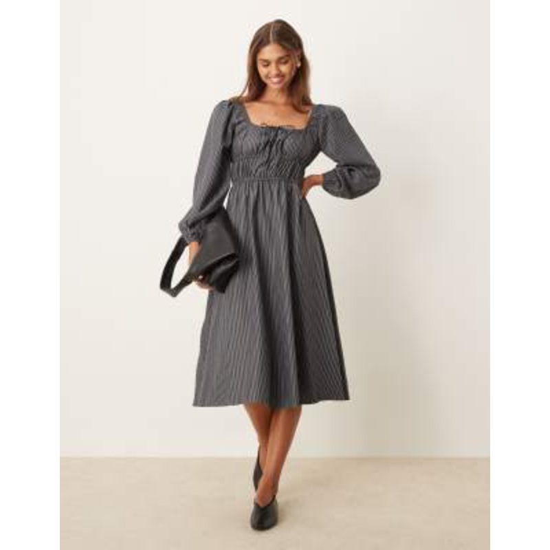 Find the best selection of Glamorous tie front volume sleeve shirred maxi dress in gray and black stripe. Shop today with free delivery and returns (Ts&Cs apply) with ASOS!