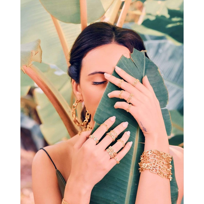 Abandan despair, slip on the Glee ring and remind yourself that it is you who holds the key to your happiness. Crafted in 24k gold plating, our signature monogram interlinked Glee ring comes illuminated with sparkling crystals.