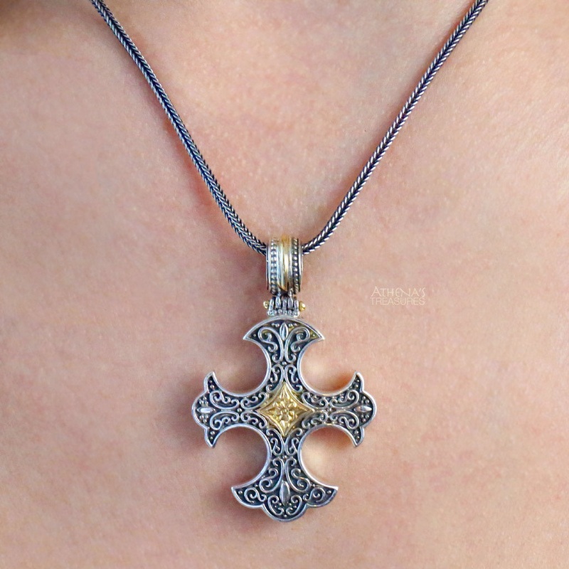 The Gold Center Flared Western Cross is crafted with 18k gold and sterling silver, it adds a touch of luxury and elegance to any occasion or daily wear. Perfect for baptisms and special events.