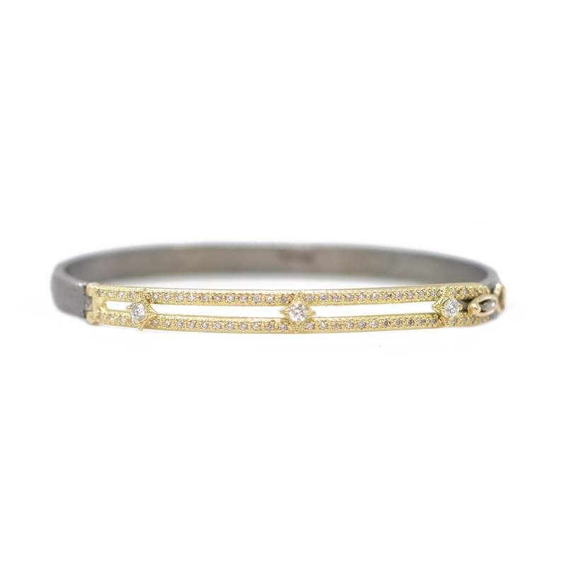 18k Yellow Gold and Grey Sterling Silver Crivelli Huggie Braceletwith 0.46 CT White Diamonds.