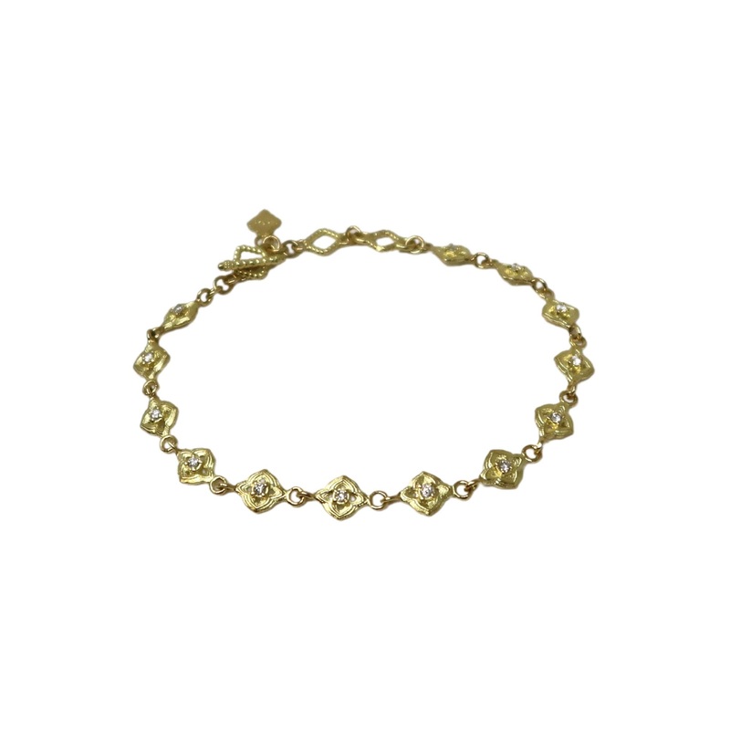 18k Yellow Gold Scroll Chain Bracelet with 1.43 CT White Diamonds. Adjustable 6.5″ and 7.5″.