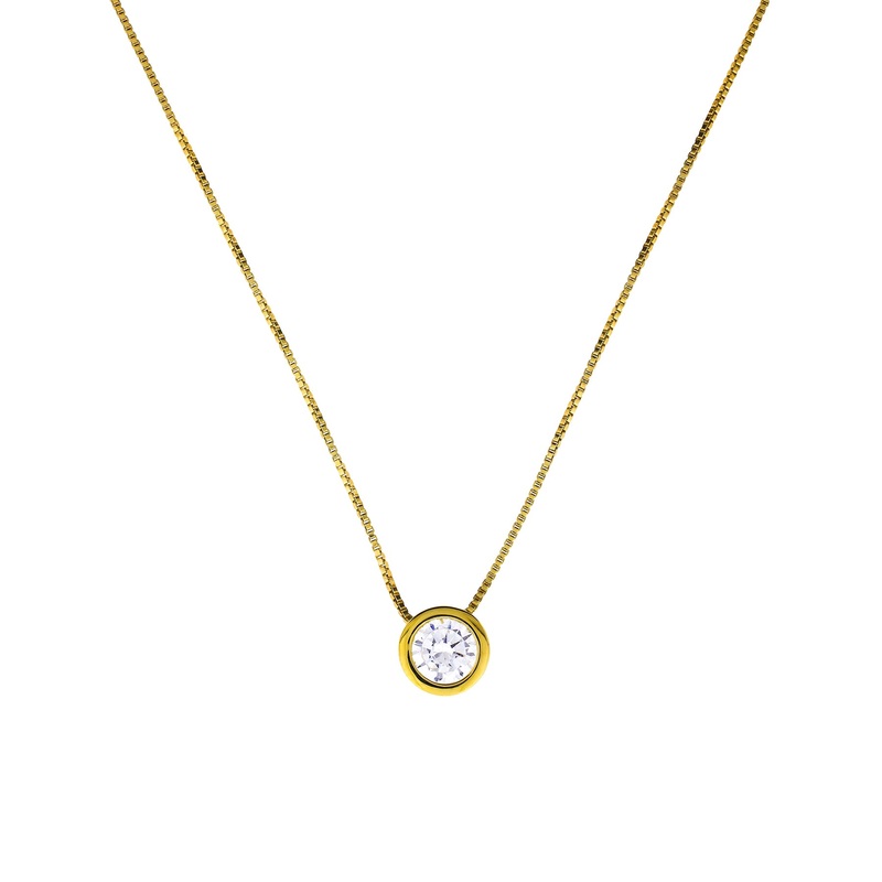 This pendant features a clear brilliant cut cubic zirconia stone. The stone setting is carefully designed to allow maximum light to reflect each individual facet.