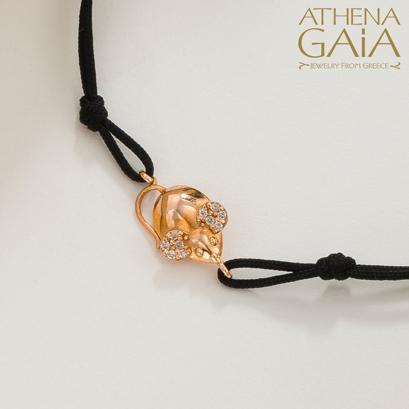 R8295213Golden Mouse With Diamonds Adjustable Cord Bracelet