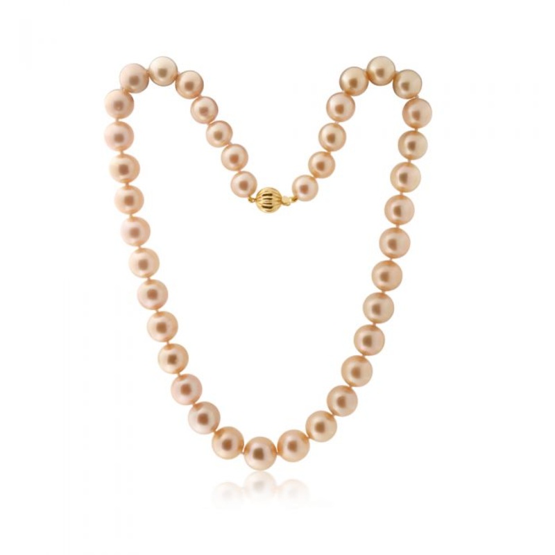 Adorn yourself with this Golden South Sea 9-12mm Graduated Pearl 45cm Strand with 9ct Gold Clasp. This special piece displays a stunning gold colour, with a set of elegant South Sea Pearls to adore. A texture yellow gold clasp adds the finishing touch to an already beautiful necklace.