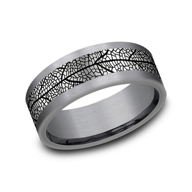 Gray Tantalum And Black Titanium The Bryce 8mm Leaf Pattern Wedding Band