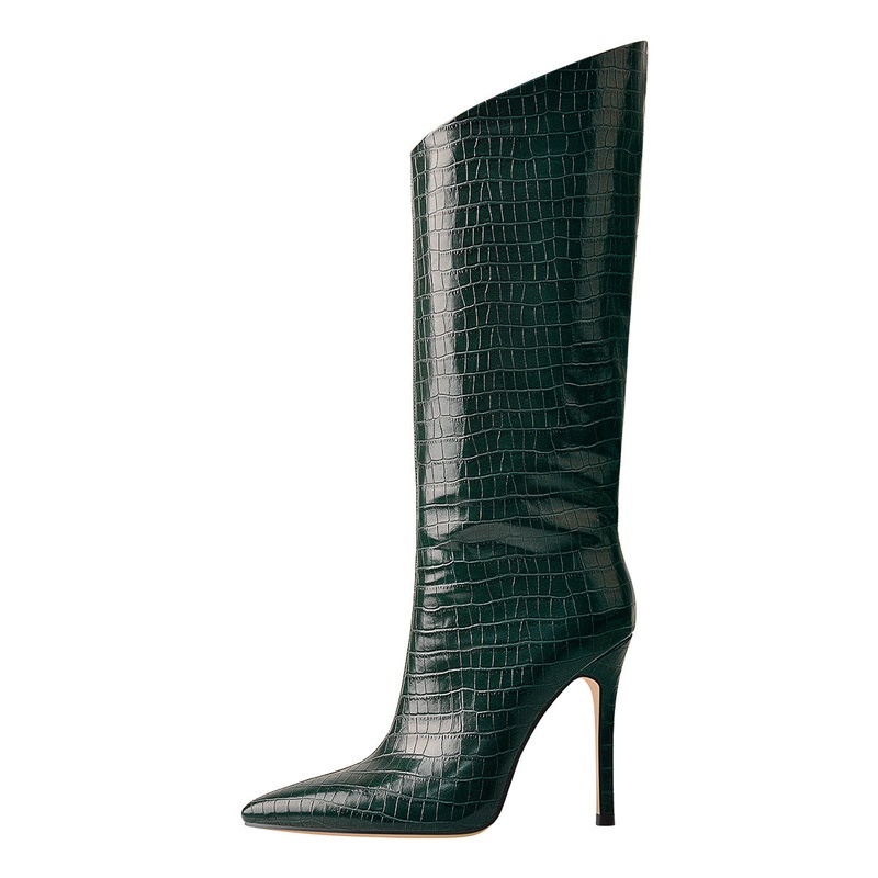 Green Stone Pattern High Heel Mid-Calf Boots