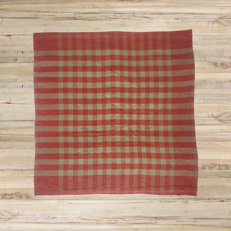 Plaid napkin. 18x 18 square. Comes in a pack of 2 napkins. This textile is handwoven, and we embrace imperfections and irregularities in the weave, as they are evidence of the human hand. We hope you do too. 100% cotton. Machine wash cold and dry low heat