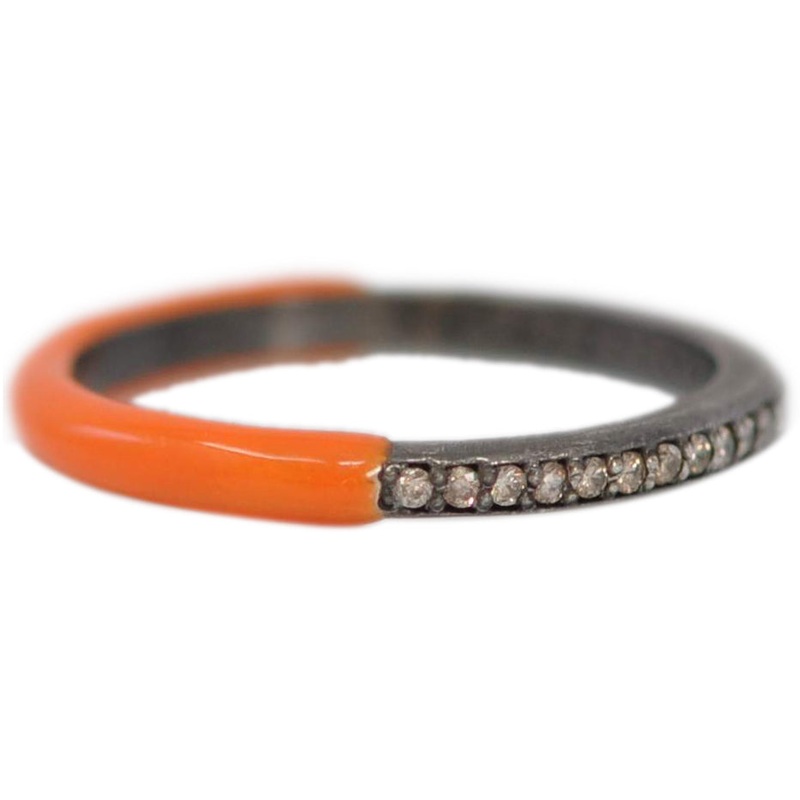 Blackened and Grey Sterling Silver Stack Band with Half-band of Champagne Diamonds and Half-band in Orange Enamel.