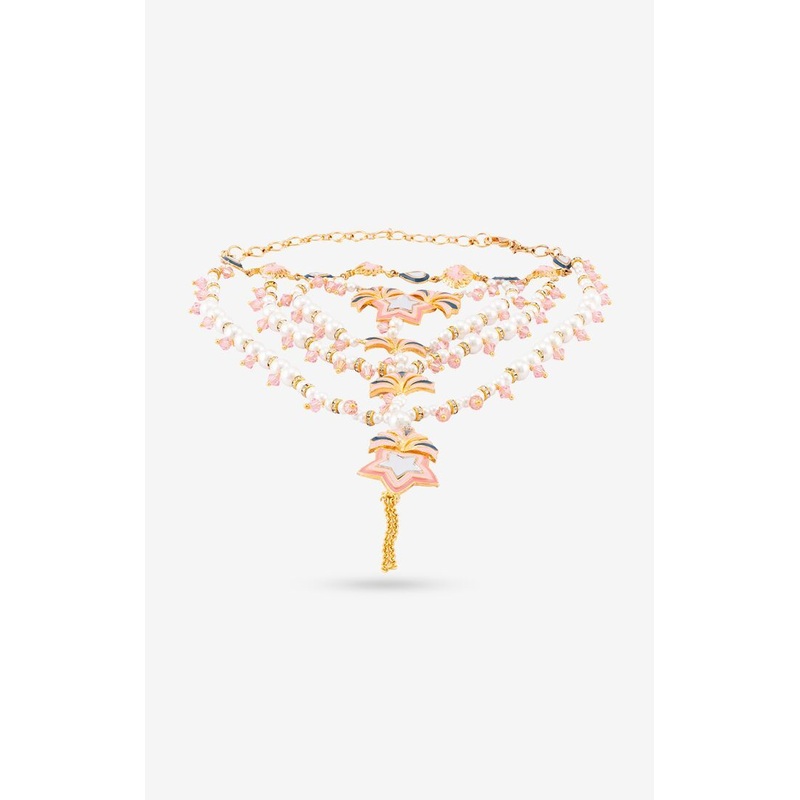 Adorn your feet beautifully with the Hana Foot Harness that is exquisitely crafted from fine pearls, intricate enameling and mirrors. Perfect to team on a floral lehenga for your Mehendi event.