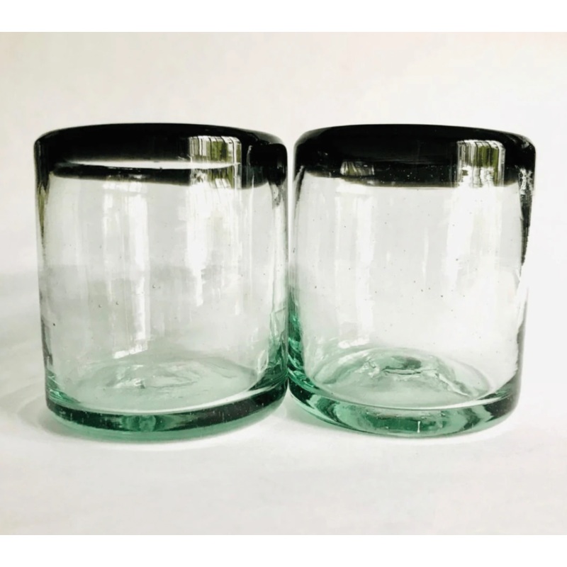 Let's get the party started with hand-blown tumbler glasses with a POP of color on the rim! Made by master blowers in Mexico. No pieces are the exact same and they stand roughly 3.75" tall and are 3.5" wide. Capacity: 12 oz Ethically sourced and made from