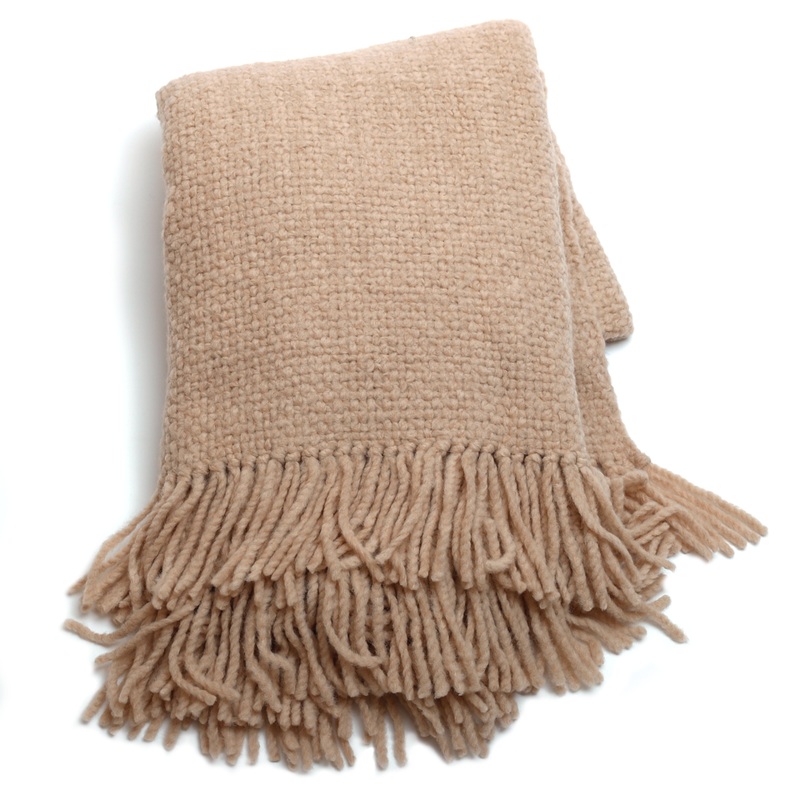 Soft + bouncy woven throw blanket to wrap up in. Hand loomed and naturally dyed fiber blend of Baby Alpaca and Merino. 5.75 ft x 4.25 ft 48% BABY ALPACA, 48%MERINO, 4%POLYESTER.