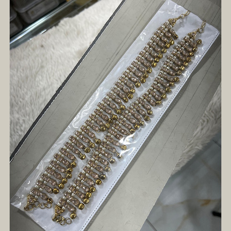 Step up your style game with Hira Collections’ Gold Plated Crystal Stone Beads And Pearls Ghungroo Payal Anklets. Made from high-quality materials, these anklets add a touch of elegance and sophistication to any outfit. The intricate design and use of Kundan stones and pearls make them a must-have accessory for any occasion.Note: Image may be vary slightly from the actual Product.